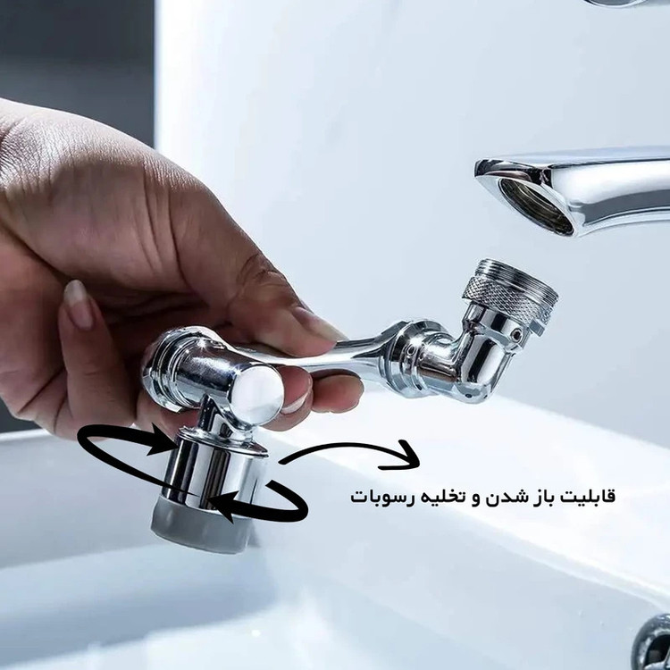 نصب بسیار راحت، سایز قطر این سری شیر آب برای تمامی شیرهای روشویی و آشپزخانه رایج بازار ایران مناسب میباشد. دوحالت پاشش آب