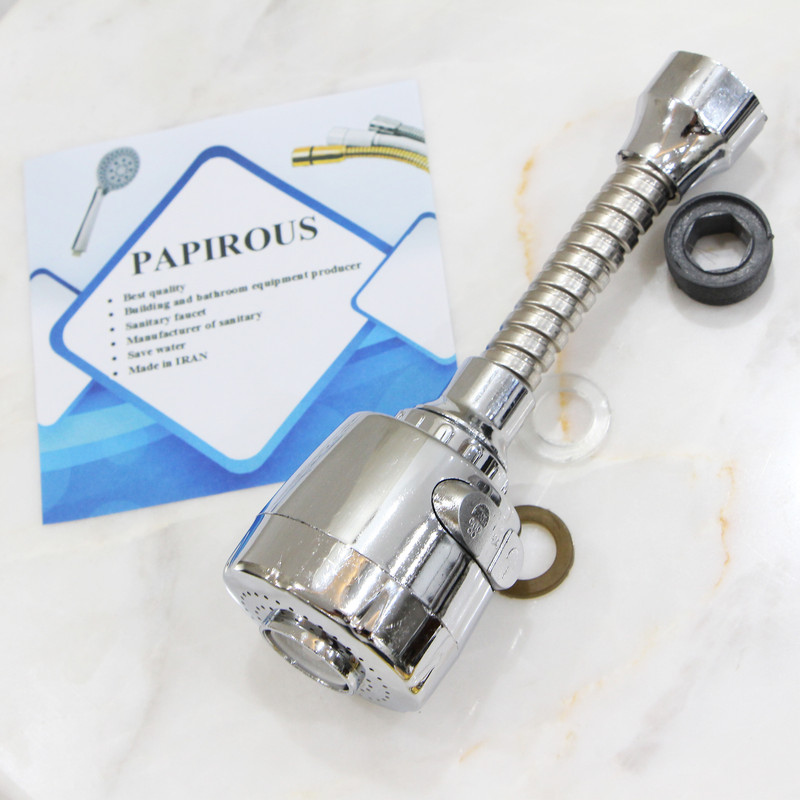 داراي تبديل و واشر مخصوص _ صرفه جویی در مصرف آب _ ریزش آب به دو حالت _ قابل استفاده برای تمامی علم شیرالات ظرفشویی و روشویی - لطفا در هنگام نصب برای آب بندی از تمامی واشر های داخل بسته بندی به درستی استفاده کنید -طول عمر بالا