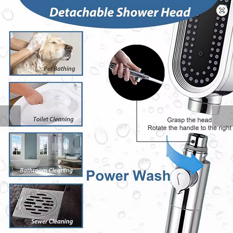 سردوش سیار , عملگر دستی , صرفهجویی در مصرف آب , مه پاش , دارای دکمه قطع و وصل جریان آب , امکان تغییر حالت پاشش آب سردوش