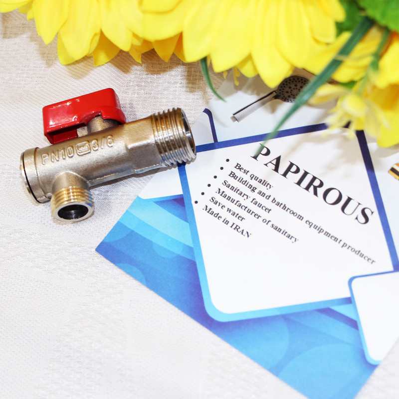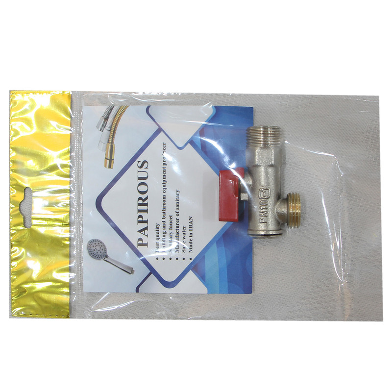 1 عدد ( دسته قرمز ) سایز : 3/8 مدل: فیلتر دار استاندارد برنجی، سایز این شیر پیسوار 1/2 به 3/8 می باشد.