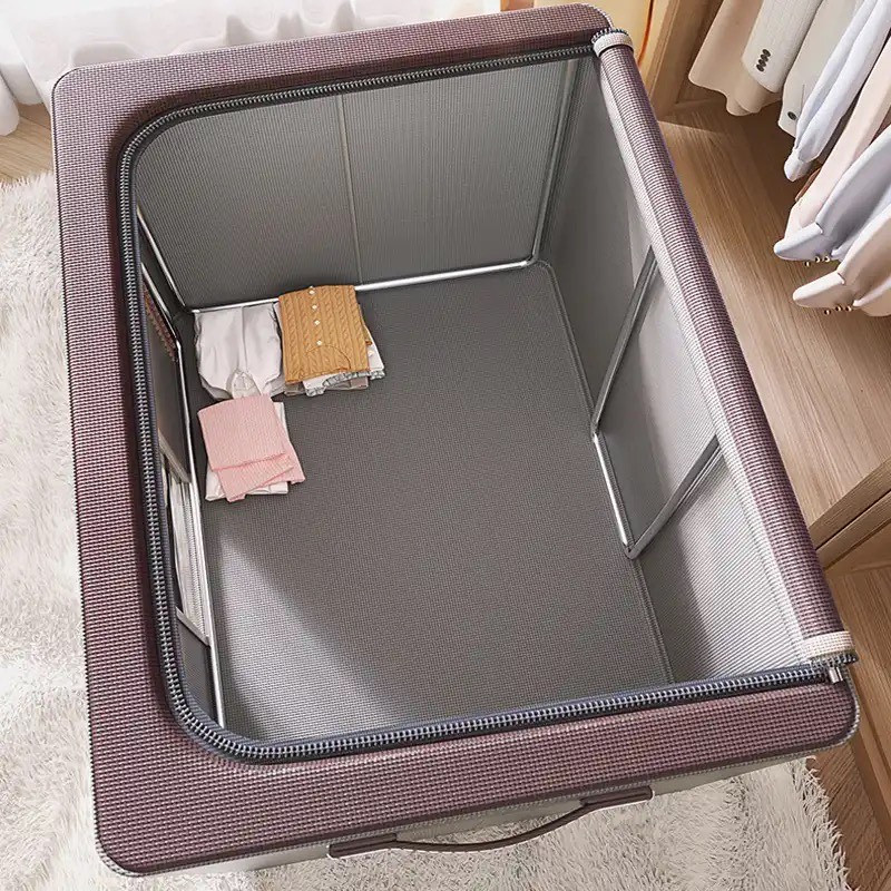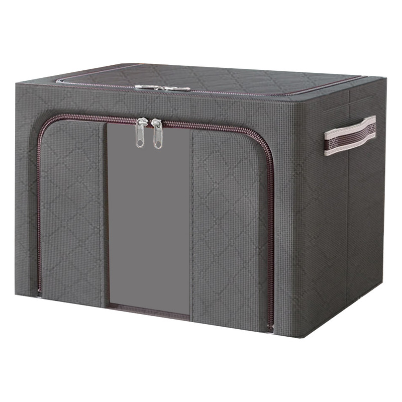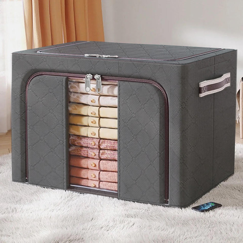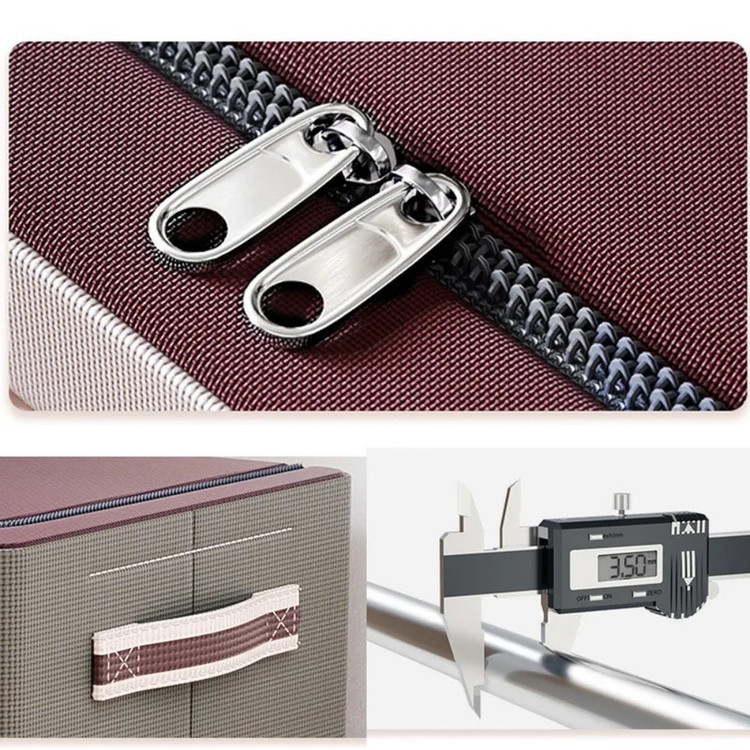 باکس لباس لیلیوم مدل دو درب همراه با اسکلت فلزی تاشو 4 میل و کفی 3 میل MDF و پارچه 3 لایه فلامنت در ابعاد 50x40 سانتی متر در ارتفاع 30 سانتی متر میباشد جنس رویه پارچه ضخیم بوده و در داخل آن اسکلت فلزی با قابلیت تا شوندگی برای ایستایی آن تعبیه شده است همچنین این نظم دهنده داری یک کفی بسیار مستحکم توکار میباشد که ایستایی آن را بیشتر میکند و مانع از دفرمه شدن آن حتی توسط اجسام سنگین میشود. در این باکس یک عدد زیپ با سر زیپ دوبل در قسمت بالایی و جلوی کار قرار داده شده است تا استفاده از آن راحت تر باشد و یک پنجره در قسمت جلویی آن تعبیه شده است تا لوازم داخل باکس را بدون باز کردن زیپ هم بتوان مشاهده کرد.