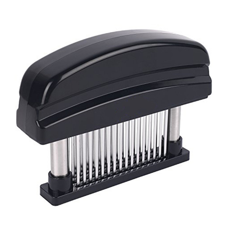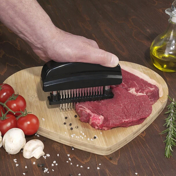 دستگاه ترد کننده گوشت مدل H109 از 48 عدد سوزن استیل مخصوص تشکیل شده است که با فشار دادن دستگاه روی گوشت و استیک، منجر به کاهش آب گوشت ،کاهش زمان پخت گوشت تا 40% و همینطور تردی گوشت شده و همچنین سوراخ های ریز سطحی روی گوشت ایجاد میکند که باعث می شود آب نمک، سرکه ، و ادویه جات و طعم دهنده های مورد نظر شما که گوشت یا ماهی خود را در آن میخوابانید براحتی جذب گوشت شود.