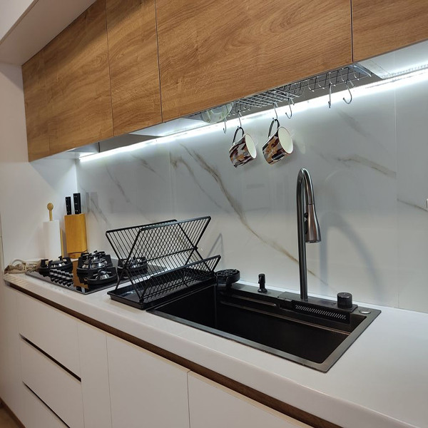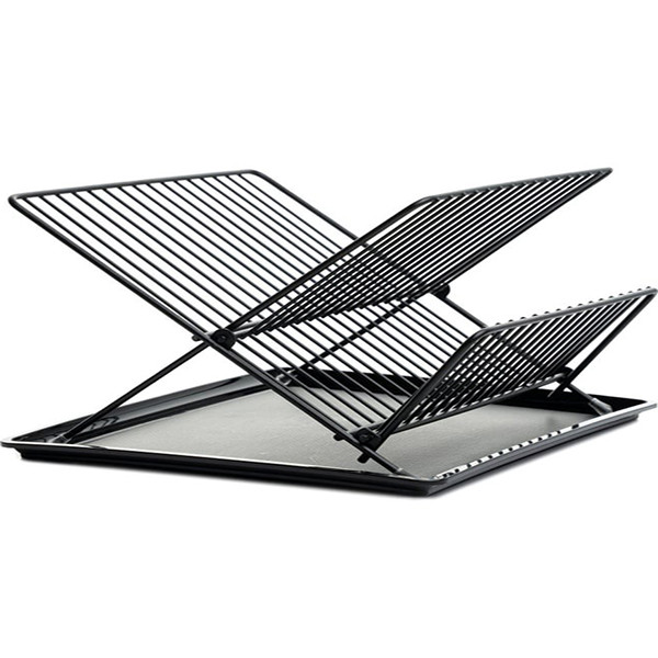 جا ظرفی کنار سینک تاشو با سینی یکی از محصولات جدید با طراحی کاربردی می باشد که نظر همه را به خود جلب کرده است. جا ظرفی جزو پر استفاده ترین لوازم آشپزخانه به شمار می رود و با استفاده از آن می توانید انواع ظروف، لیوان ها و … را به زیبایی درون آن بچینید تا با بهترین حالت خشک شوند. این محصول به گونه ای طراحی شده که امکان نظم دادن به ظروف شسته شده وجود دارد و به همین دلیل می توان آن را جزو نظم دهنده ظروف برشمرد. ویژگی متمایز این جا ظرفی این است که قابلیت تا شوندگی دارد و زمانی که شما به آن نیاز نداشته باشید می توانید آن را جمع کنید و در فضای کمی آن را نگه دارید. جا ظرفی سینک تاشو از جنس فلز می باشد، پایه های محصول حالت ضربدری دارند و می توانید برای استفاده آن را به راحتی باز کنید. صفحه ی آن به شکل میله های نازکی است که فاصله ای مناسب برای قرار دادن انواع بشقاب و پیش دستی دارد. یک طرف قسمت پایین بدنه صفحه ای کوچک به صورت زاویه دار متصل شده که برای چیدن انواع لیوان و فنجان مناسب می باشد. ویژگی دیگر محصول وجود یک سینی پلاستیکی زیر آن است تا برای استفاده نگرانی بابت خیس شدن سطح زیر جا ظرفی نداشته باشید و آب اضافی ظروف درون سینی جمع شود. صفحه ی سینک که حالت ضربدری دارد به راحتی روی هم جمع شده و جا ظرفی به شکل یک صفحه ی مستطیلی در می آید تا امکان جابجایی داشته باشد و برای نگهداری به فضای کمی نیاز داشته باشد.