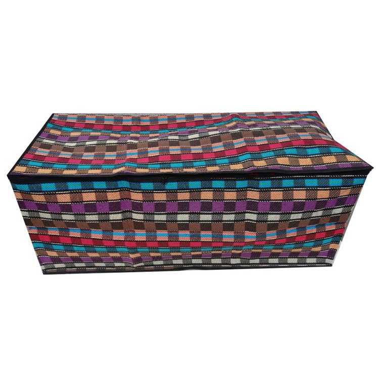 باکس لحاف و تشک یا بقچه زیپ دار یکی از اقلام ضروری هر خانه است. این باکس ها در 10 سایز مختلف تولید شده اند تا طیف وسیعی از لوازم در اندازه های مختلف، اعم از لوازم خیاطی، لباس و حتی رختخواب و... را در خود جای دهد و به خانه شما نظم دهد. به منظور استحکام بیشتر از بهترین مواد لمینت شده و دارای دو دستگیره در دو طرف باکس میباشد که حمل آن را آسان میکند. پارچه های به کاررفته جهت تولید این محصول در برابر سايیدگی، پارگی، حشرات و رطوبت مقاوم است.در نهایت طرح های زیبای این کالا باعث شده یکی از پر طرفدارترین کالاها باشد