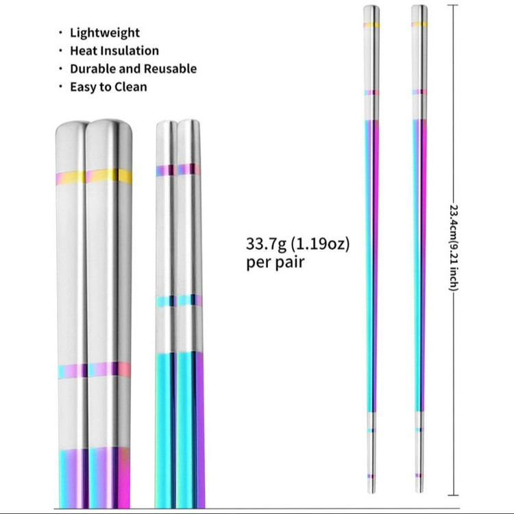 چاپستیک در فرهنگ آسیایی جایگاه ویژه ای در آشپزخانه دارد این چاپستیک از جنس استیل ضد زنگ 304 با آلیاژ رنگی مقاوم به حرارت ساخته شده است که علاوه بر زیبایی از استحکام بالایی برخوردار است.