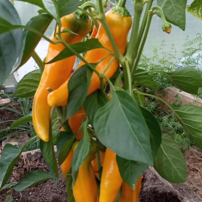 محصولی بلند و گوشتی با رنگی بسیار جذاب، طول این فلفل گاهی به 20 تا 25 سانتی متر نیز می رسد حاوی 10 عدد بذر قابلیت کاشت در گلدان طعم محصول کاملاً شیرین