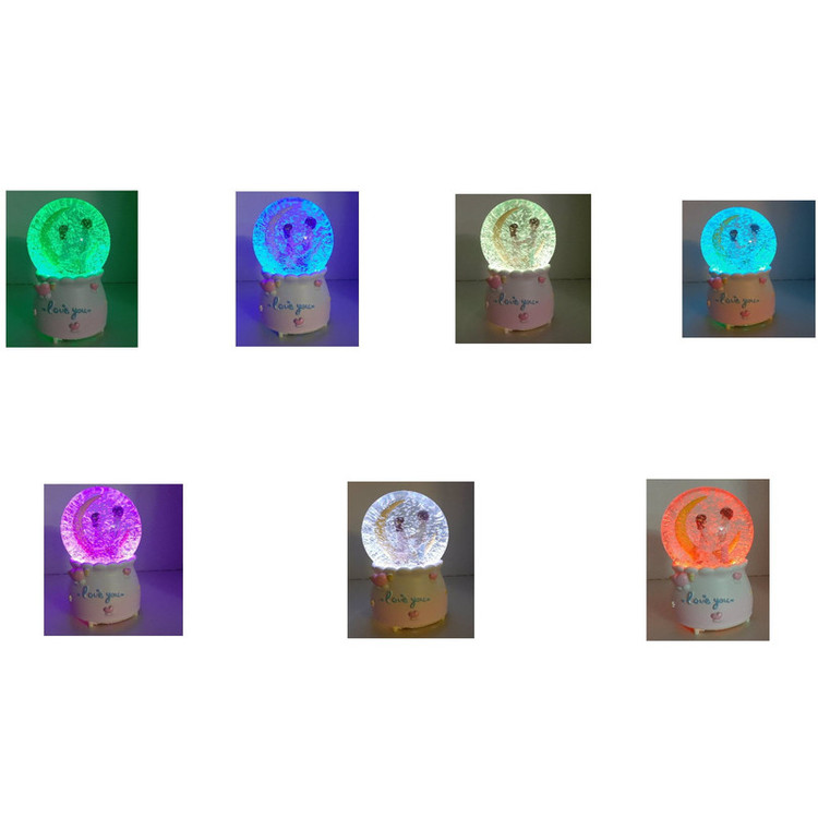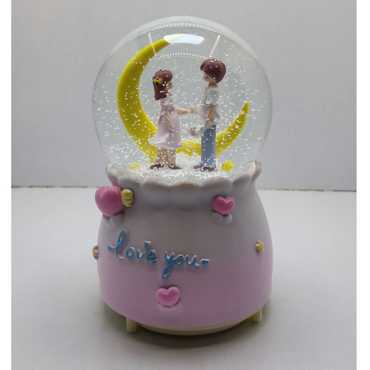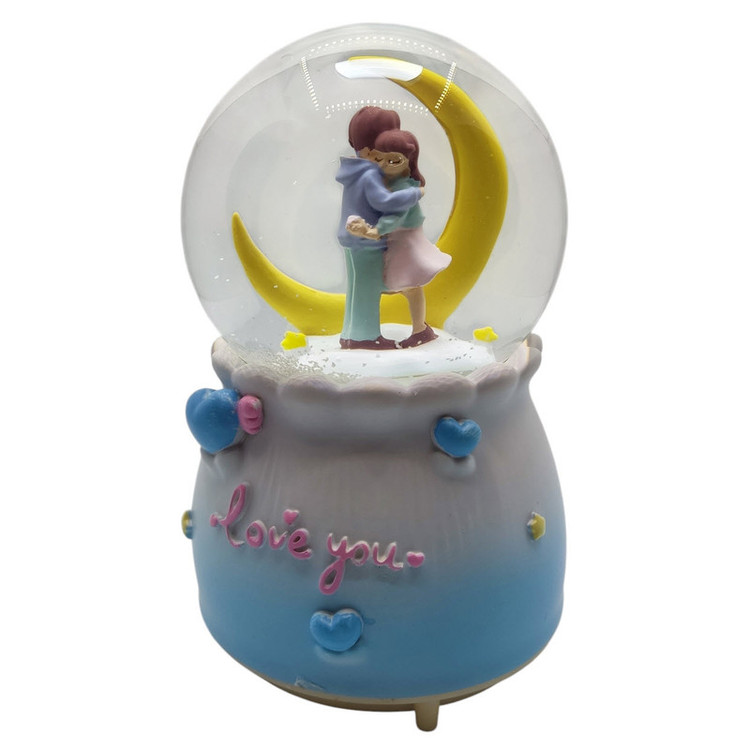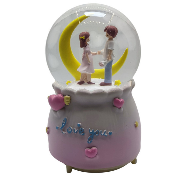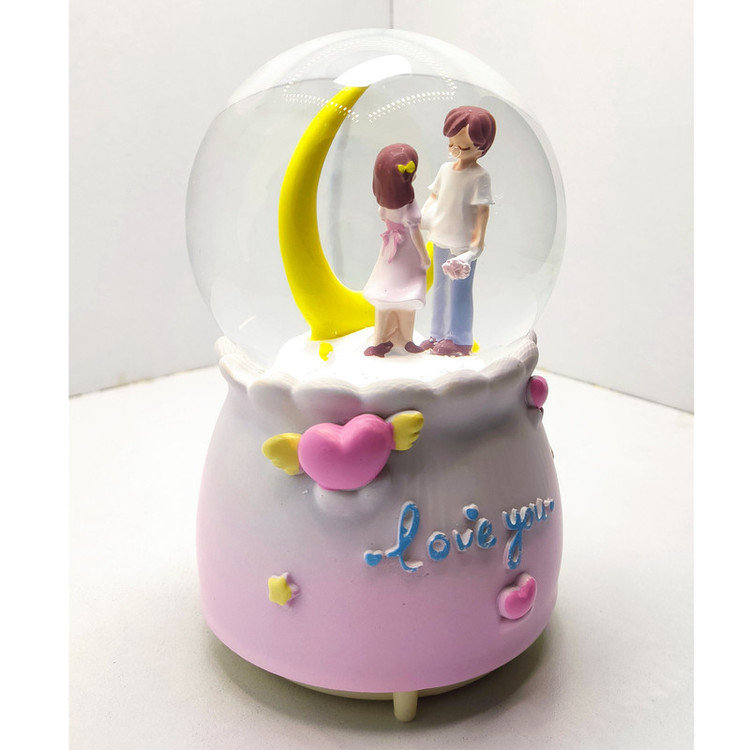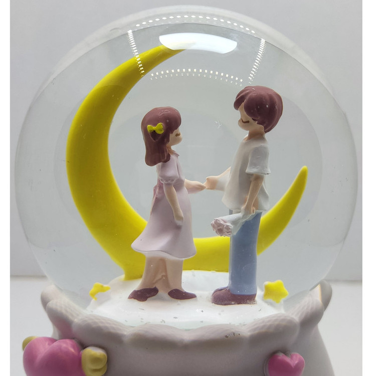 گوی موزیکال مدل پمپی چراغ دار طرح دیدار عاشقانه در کنار ماه