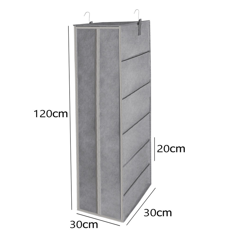 آویز نظم دهنده چینش یک آویز 6 طبقه با ابعاد 120 در 30 در 30 سانتی متر است، این محصول دارای 6 طبقه با ابعاد 30 در 30 در 20 سانتی متر است و قابل استفاده داخل کمد و کمد دیواری میباشد.