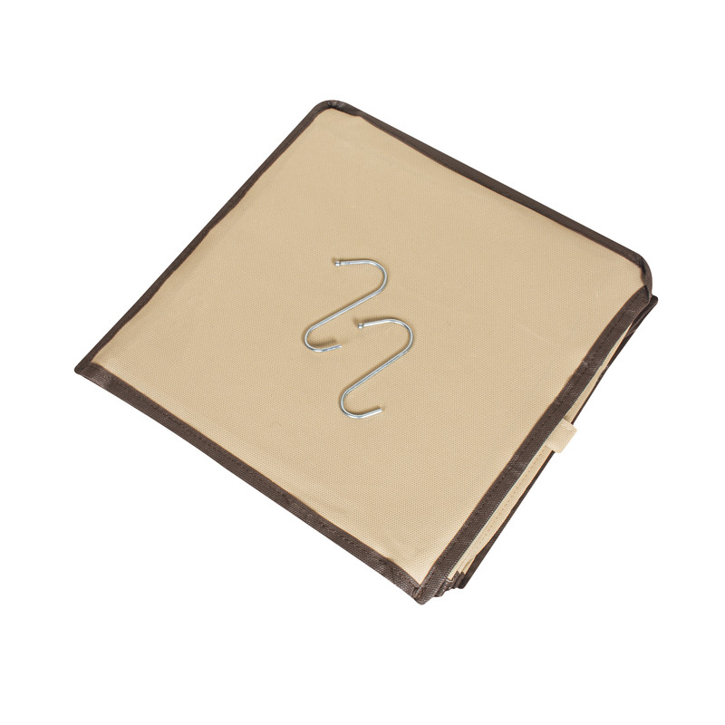 این محصول مناسب برای نظم دادن به انوع لباس، کیف، کفش، شال و روسری و ... میباشد. در این کالا به جای استفاده از چسب پارچه ای برای اتصال به کمد دیواری یا کمد از دو قلاب فلزی استفاده شده تا هم استحکام و دوام بیشتری داشته باشد و هم به دلیل اتصال به کناره ارگانیزر در مرور زمان مقوای سقف این محصول دچار شکستگی و قوس نشود.