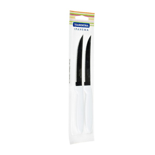 این بسته شامل 2 عدد کارد اره ای ترامونتینا با کیفیت بسیار بالای تیغه و دسته هایی محکم و یک دست میباشد. جنس این تیغه ها از استیل مرغوب برزیلی است که برای برش وپوست کنی بسیار مناسب است
