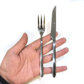 سایر توضیحاتشامل 6 عدد چنگال میوه و 6 عدد کارد میوه با استیل ضخیم و براق و با کیفیت - طول کارد تقریبا 18 سانتی متر و طول چنگال حدود 15.5 سانتی متر - تیز و برنده-ضخامت استیل 2 الی 3 میلی متر
