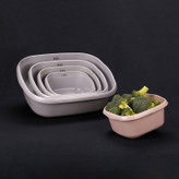 محصولات آبکش و لگن چهارگوش بانیس مدل الینا در 4 سایز طراحی و تولید شده اند که متناسب با ابعاد میتوانند کاربرد های گوناگونی داشته باشند. این محصولات دارای رنگ بندی متنوعی بوده و طیف وسیعی از سلایق را در بر میگیرد. همچنین به دلیل طراحی ساده و کاربردی آنها، قابلیت ست کردن با سایر لوازم آشپزخانه را فراهم می آورد. بر روی بدنه لگن نیز سوراخ هایی جهت خروج بهتر آب تعبیه شده است. این سایز از آبکش و لگن میتواند به عنوان سبد سینک نیز مورد استفاده قرار گیرد ابعاد و سایزبندی این محصول به شرح ذیل می باشد: سایز1: طول 23 عرض 19 ارتفاع 10 سایز 2: طول 28 عرض 24 ارتفاع 12 سایز 3: طول 34 عرض 30 ارتفاع 13.5
