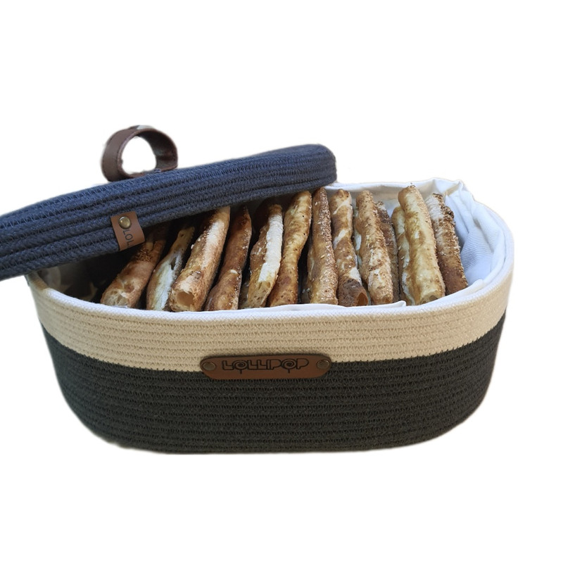 ظرف نان لالیپاپ مدل B2 از ریسمان قیطان ساخته شده است. داخل آن با پارچه سفید متقال پوشانده شده است.