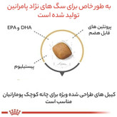 غذای سگ رویال کنین پامرانین 3 کیلویی با فرمول اختصاصی آن، به سگ پامرانین شما کمک میکند تا پوست سالم و موهای درخشانی داشته باشد. این غذا با اسیدای چرب EPA و DHA غنی شده است تا سلامت پوست و موی سگ را تضمین کند.