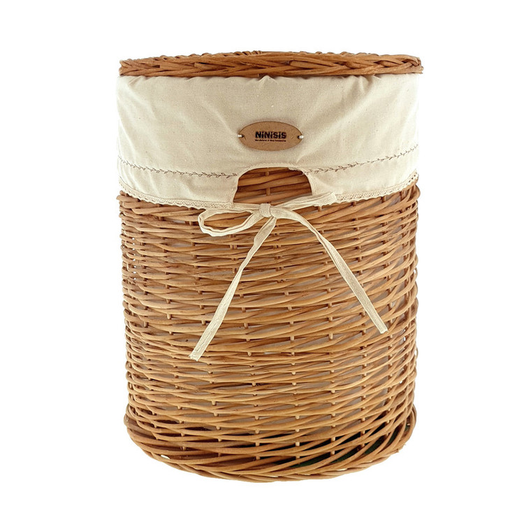 این سبد رخت چرک زیبا یک پیشنهادی عالی و انتخابی ایده آل هم برای تزئین اتاق و هم برای جمع آوری و نگهداری از لباسهای کثیف تا زمان شستوشو می باشد. چرا که این سبدها برخلاف برخی از محصولات پارچهای و پلاستیکی و چرمی که لباسها درون آنها به شدت بو میگیرند و سبب تولید میکروب و باکتری می شوند به دلیل جنس چوبی حصیری ای که دارند مانع از ایجاد بوی نامطبوع در لباسها می شود و تا حد بسزایی رطوبت موجود در البسه را به خود میگیرد تا مانع از پوسیدگی لباس و بوی نامطبوع گردد. علاوه بر این بدنه و درپوش سبد با توجه به حفره های ریزی که بینشان هست سبب میگردد هوا از بین دیوارهها عبور کند که این امر از تشدید بوی برخی لباسهای چرک جلوگیری می کند. حصیر بهکار رفته در سبد هم علاوه بر اینکه از مقاومت و استحکام بسیار خوبی برخوردار است، داخل سبد هم یک استر پارچه ای با کیفیت گلدوزی شده تعبیه شده که به سادگی از سبد جدا میشود و قابل شست و شو است. اما پیش از خرید این محصول به سایز و رنگ آن توجه کنید چرا که این سبد ها در 3 سایز بزرگ، متوسط و کوچک و 2 رنگ طوسی و قهوه ای عرضه و ارائه میشوند. که تنها تفاوت رنگ آن در رنگ سبد آن است. و پارچه داخلی همه سبد ها استخوانی رنگ هستند.