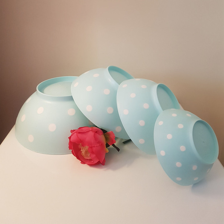 مجموعه چهار عددی کاسه های دو جداره طرح خالدار در گنجایش های 3 و1.5 و0.75و 0.35 لیتری مقاوم در برابر یخ زدگی و امواج ماکروویو و انواع شوینده ها در ماشین ظرفشویی می باشند.