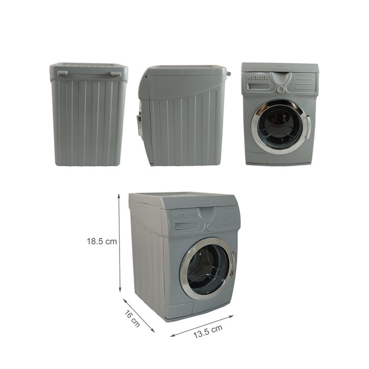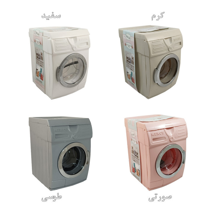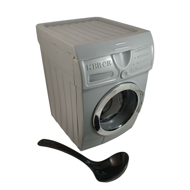 این محصول جذاب از برند مرسه و با طرح ماشین لباسشویی را میتوانید برای ذخیره کردن پودر ماشین استفاده کنید و به خاطر ابعاد بزرگ آن حتی میتوانید قرصهای ماشین ظرفشویی و وسایل دیگر را درون آن قرار داده و استفاده کنید. درب این محصول به رنگ کروم و داخل آن ملاقهای جهت پیمانه کردن است.