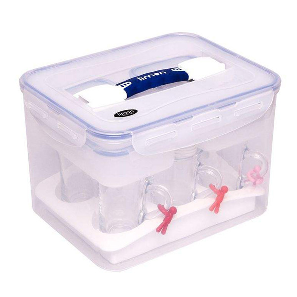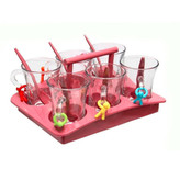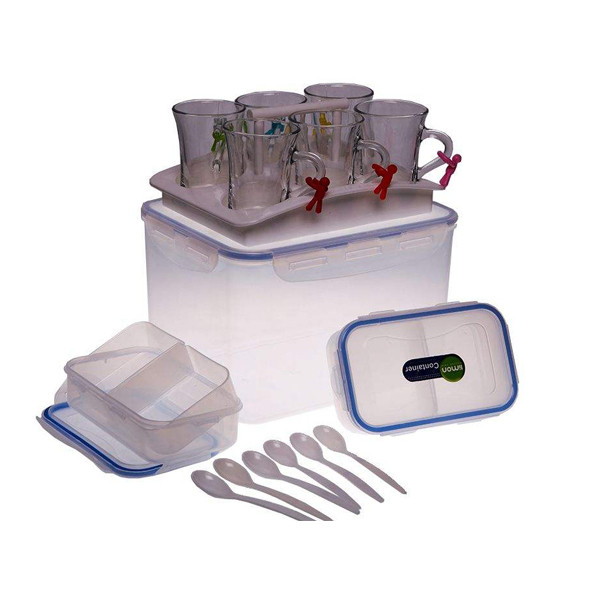سایر توضیحات- 6 عدد لیوان با ابعاد 10x7 - 6 قاشق با ارتفاع 13 سانتی متر - ابعاد ظروف داخلی : 5x11x18