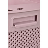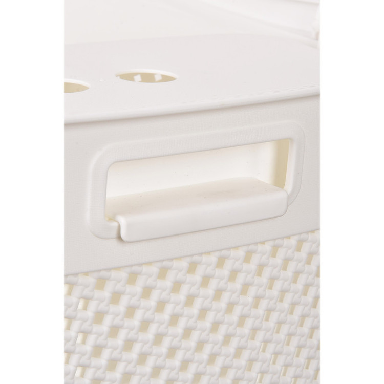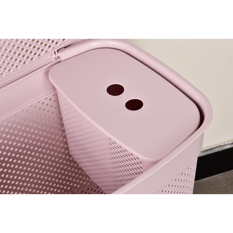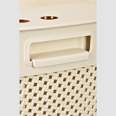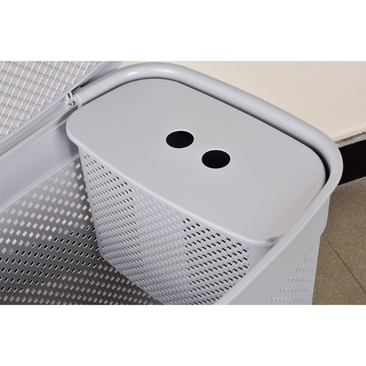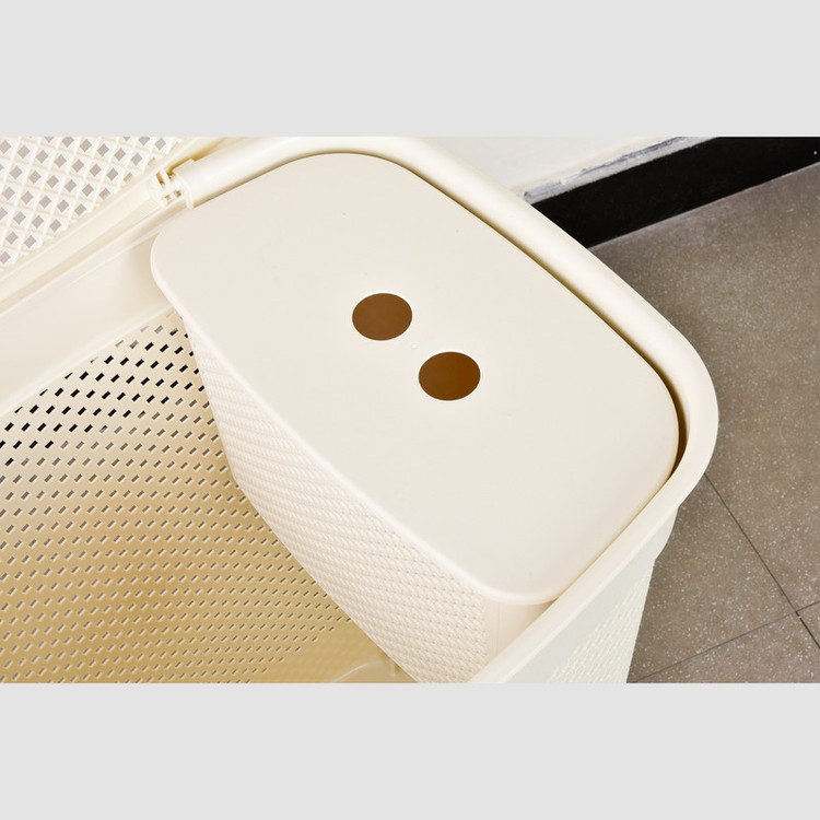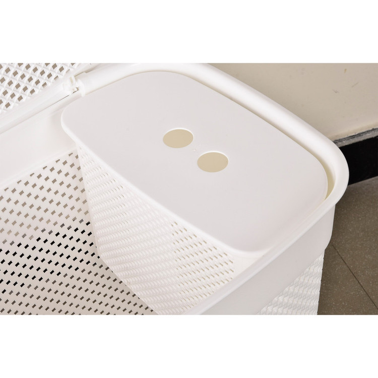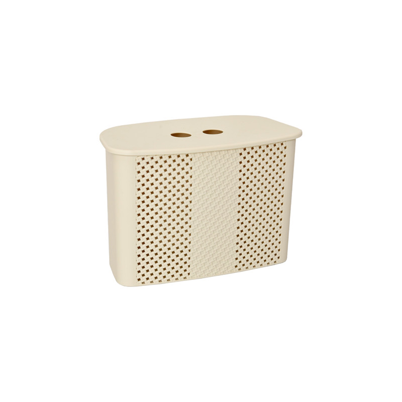 سبد رخت دربدار بلند طرح بافت لیمون ساخته شده از پلاستیک و دارای طرح زیبای بامبو حصیری است. این سبد وسیله ای مناسب و کاربردی برای جمع آوری لباس های کثیف می باشد. این سبد رخت دربدار طرح بامبو در رنگ های زیبا و متنوع مناسب هر سلیقه ای موجود است. داخل این سبد رخت ، سبدی کوچک برای لباس های کوچک تر تعبیه شده است.