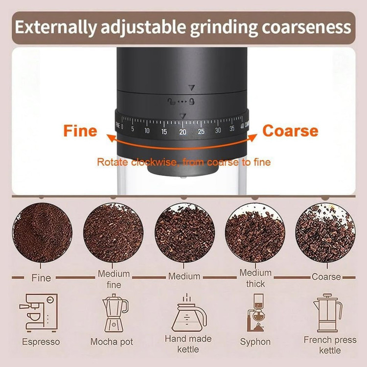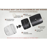 این محصول قابلیت تنظیم آسیاب با دقت بالا را دارد که قابل تنظیم از بسیار ریز (برای اسپرسو) تا بسیار درشت (برای فرنچ پرس) میباشد.این آسیاب قهوه قابل شارژ با USB-C است دارای باتری داخلی با ظرفیت مناسب برای چندین بار استفاده با یک بار شارژ است که مناسب برای سفر، کمپینگ یا استفاده روزمره در خانه و محل کار میباشد.