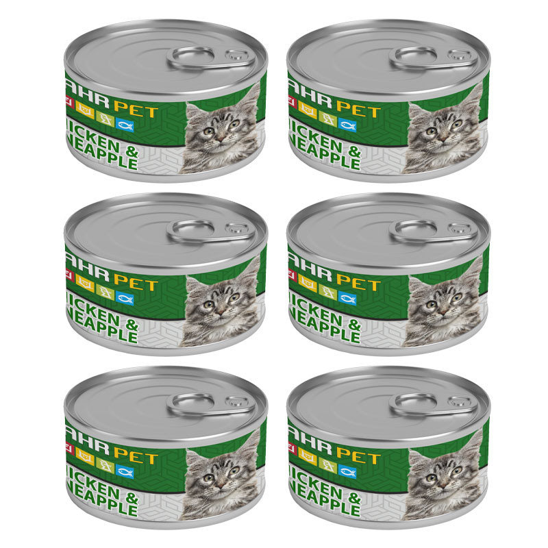 کنسرو نچرال گربه شهرپت مدل Chicken Pineapple وزن 120 گرم بسته 6 عددی