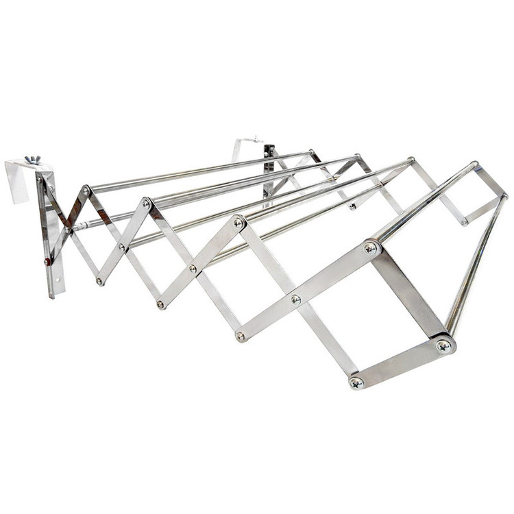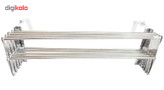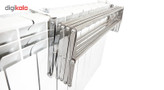 رختآویز استیل رویال قابلیت نصب بر روی دیوار، داخل بالکن و حمام را دارد. این محصول دارای دو گیره متحرک و متغیر به عرض 7 تا 12.5 سانتیمتر به صورت مجزا است که به شما این امکان را میدهد که به راحتی آن را روی رادیاتور (شوفاژ)، نرده، در و پنجره موقتا نصب کنید و در صورت لزوم آن را بدون هیچ زحمتی جدا و یا جابهجا کنید.این رخت آویز تماماً از آلیاژ استیل مرغوب بوده که باعث میشود به هیچ عنوان دچار زنگ زدگی نشود و از مقاومت بالایی نیز برخوردار شود. قابلیت جمع شدن آکوردئونی این رختآویز به افرادی که از کمبود فضا جهت پهن کردن لباسها و خشک کردن آنها رنج میبرند، کمک شایانی میکند. اندازه این محصول به صورت بسته شده فضایی به اندازه ده سانتیمتر را اشغال میکند و در زمان باز شدن به 60 سانتیمتر میرسد و سطح قابل استفاده برای خشک کردن لباسها در حدود 5.5 متر است.