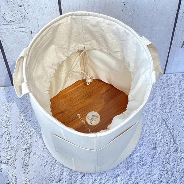 سبد رخت چرک تن تن ساخته شده از جنس پارچه ضخیم و دو لایه و دارای کفی چوبی به شکل دایره به قطر 30 سانتی متر است و برای سهولت در حمل و نقل دارای دو عدد دسته در طرفین بوده و درب آن با کشیدن نخ روی قسمت ورودی بسته میشود. همچنین بدنه آن فاقد اسکلت میباشد.