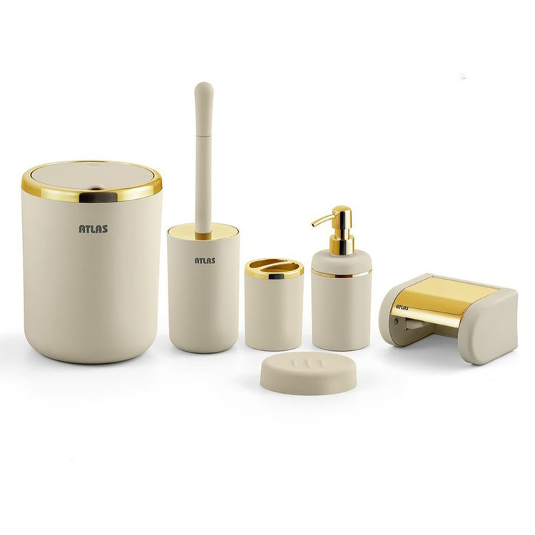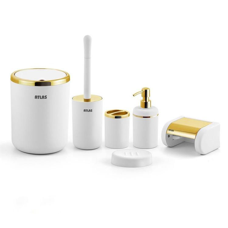 توضیحات ابعاد: سطل 19x19x22 - برس توالت شوی 10x10x35 - جامایع 10x10x20 - پایه رول دستمال کاغذی 15x12x8 - جا صابونی 12x9x3 - جاسواک 8x8x11