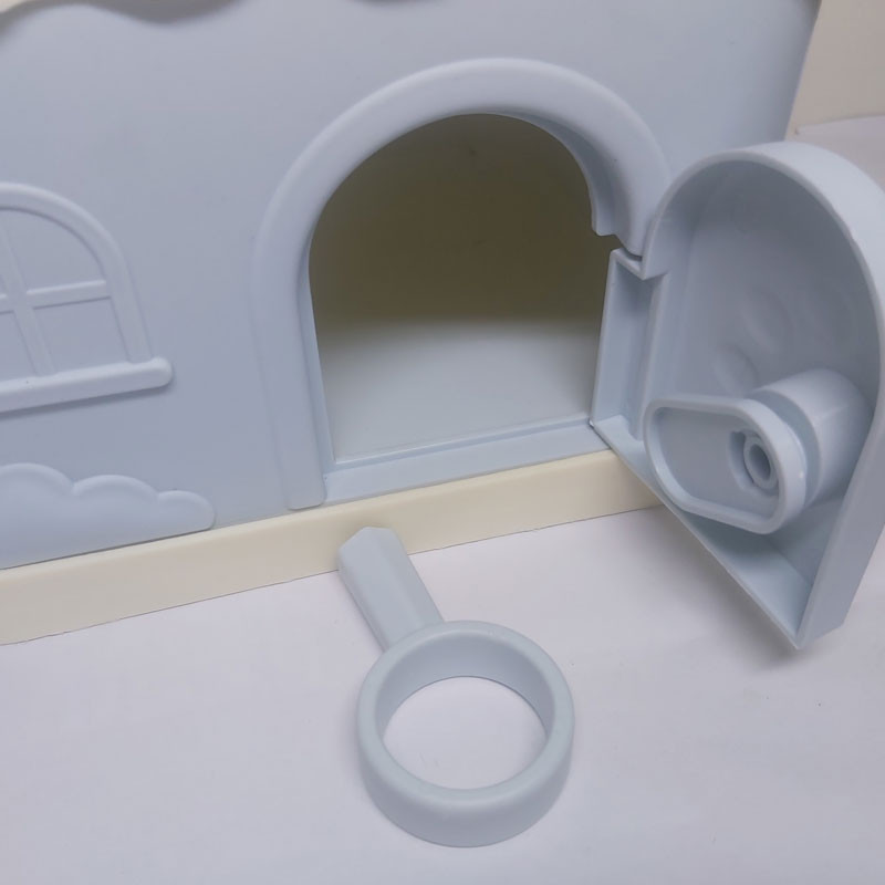 قلک مدل کلیددار طرح خانه یک کالای شیک و کاربردی است. جنس این قلک از پلاستیک است. قلک دارای دو درز برای وارد کردن سکه و اسکناس است. همچنین در خانه با کلیدی که درون قلک قرار داد باز و قفل می شود تا بتوان محتویات قلک را تخلیه نمود.