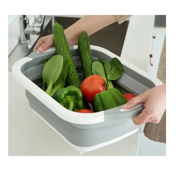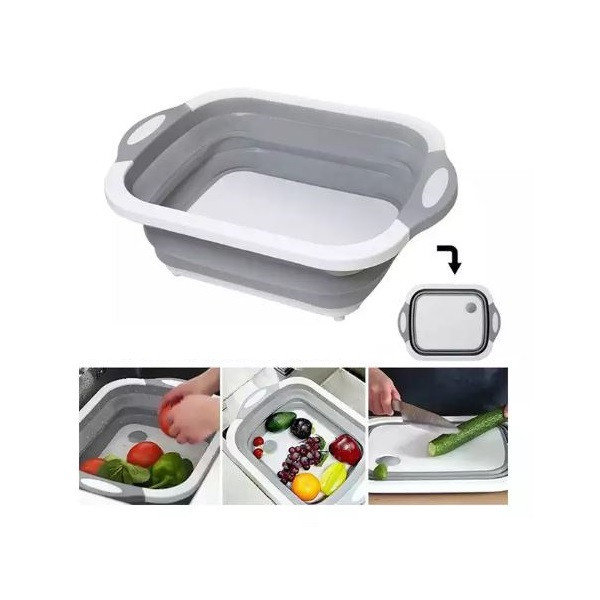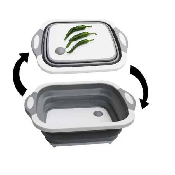 لگن سیلیکونی با قابلیت تاشوندگی است که در صورت باز بودن به عنوان لگن شست و شوی میوه و سبزیجات به کار میرود و همچنین دارای منافذ برای تخلیه آب است.و در صورت بسته بودن به عنوان تخته خرد کن میوه و سبزیجات به کار میرود.