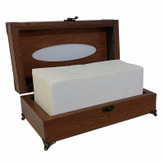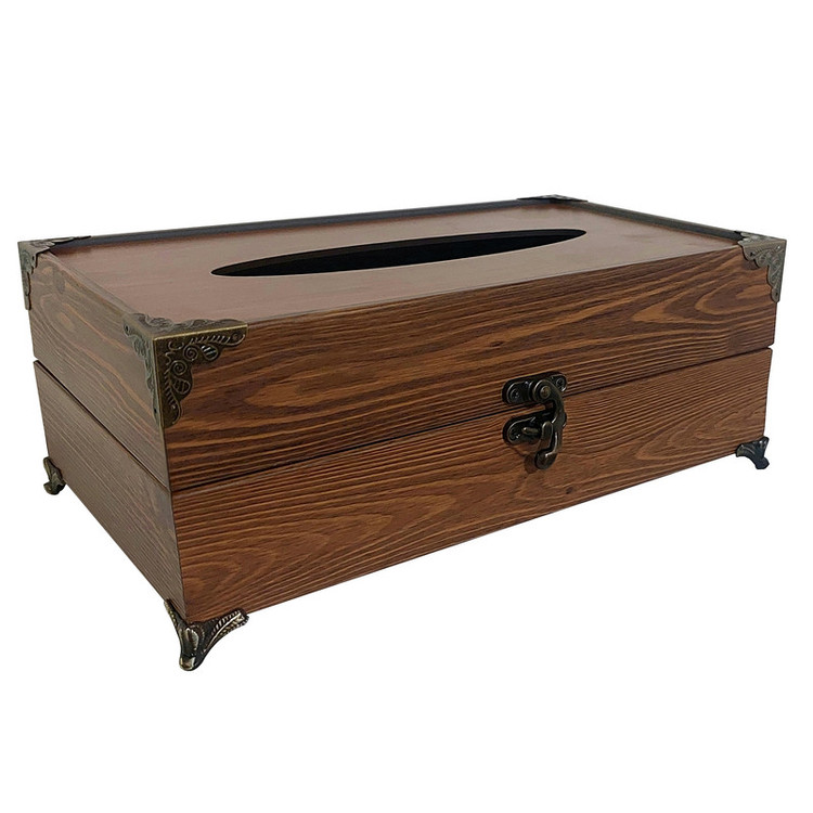بدنه جعبه از جنس پی وی سی با بهترین کیفیت و برش و مونتاژ دقیق ساخته شده است . متعلقات تزیینی محصول فلزی و سربی با آبکاری درجه یک میباشند. این جعبه گنجایش بسته های دستمال کاغذی تا 500 برگ را داراست. از جمله ویژگی های محصول می توان به بغل باز شو بودن آن اشاره کرد که کاربری آن را بسیار راحت و آسان کرده است. با توجه به طرح چوبی جعبه می توانید این محصول زیبا را با انواع مختلف دکوراسیون ها ست کنید.