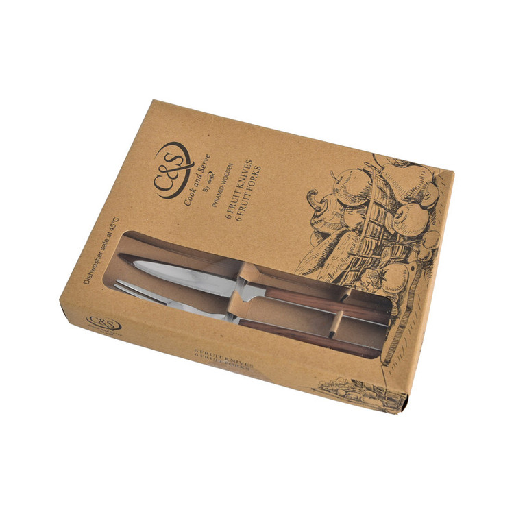 ست کارد و چنگال برند سی اند اس طرح چوبی شامل 6عدد کاردمیوه خوری .6 عدد چنگال میوه خوری .این محصول از استیل زد زنگ ساخته شده و قابلیت استفاده در ماشین ظرف شویی را دارد