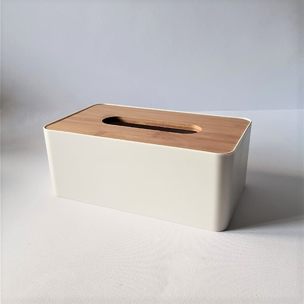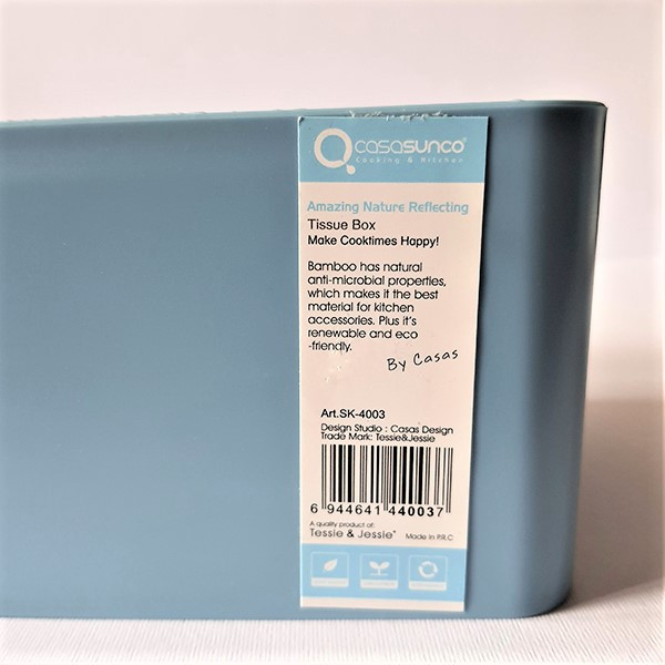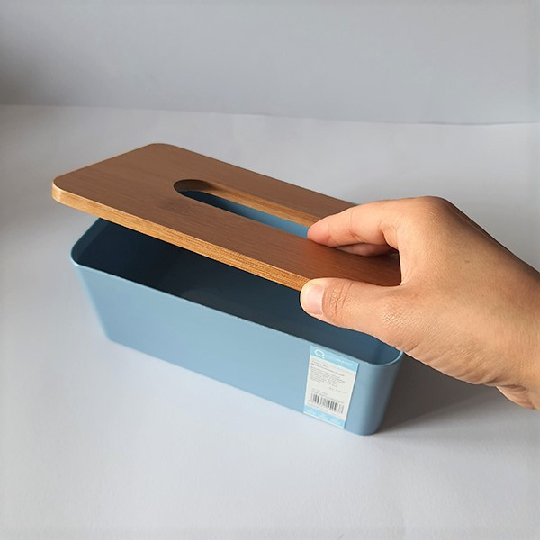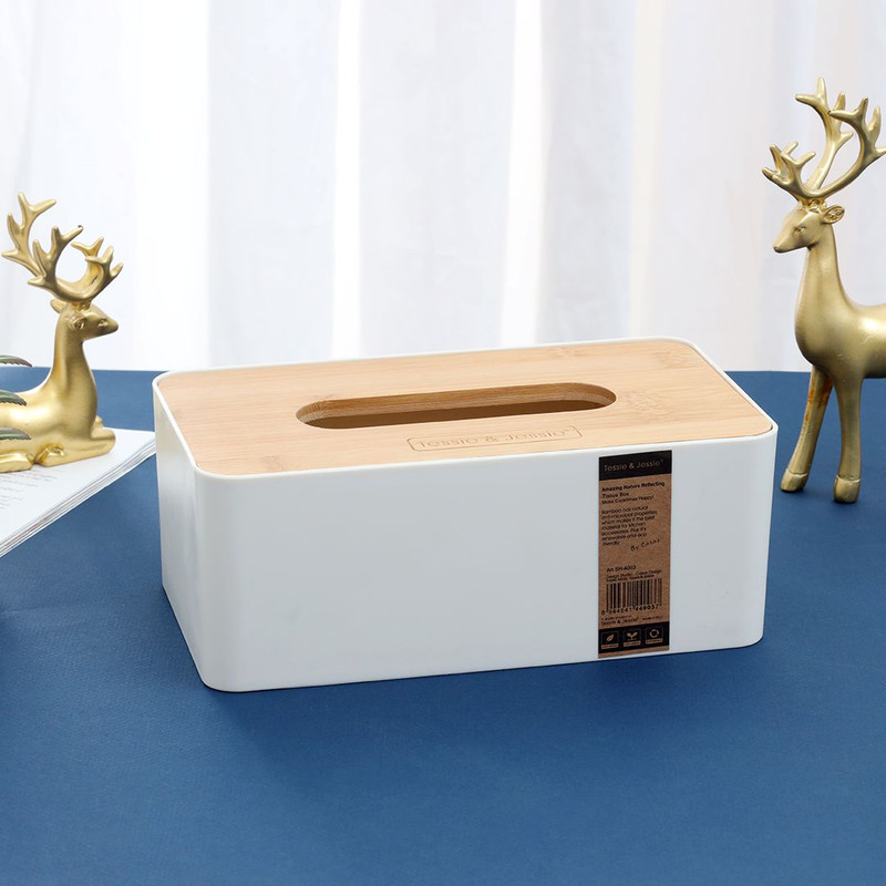 این جعبه دستمال کاغذی از برند مطرح تسی اند جسی میباشد . بدنه آن از جنس پلیمر ABS و درپوش متحرک آن از جنس بامبو میباشد . ابعاد آن 23x13 با ارتفاع 9 سانتی متر میباشد .