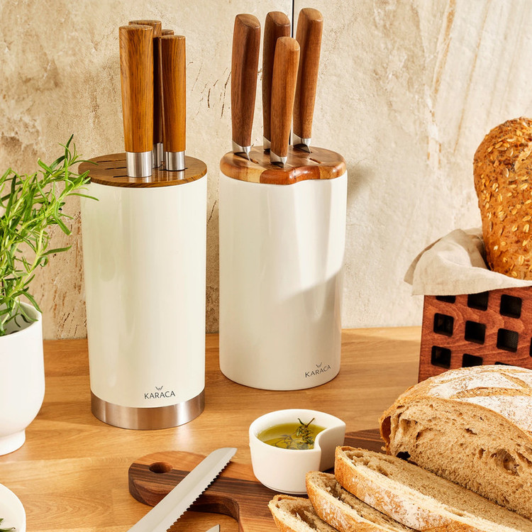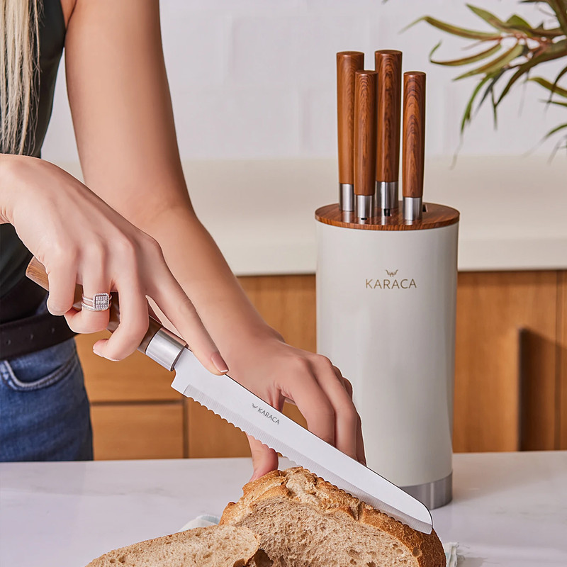 ما یک ست چاقوی بسیار شیک و بسیار کاربردی را به سرآشپزهای آشپزخانه پیشنهاد می کنیم. ست چاقو 6 تکه Karaca Foolproof دارای 6 مدل چاقو است که هر کدام زیباتر و تیزتر از دیگری هستند که شامل چاقوهای پوست کن، خرد کن، برش، نان و سرآشپز می شود. این ست چاقوی فولادی ضد زنگ که با سهولت و کاربردی بودن خود متمایز است با دسته ارگونومیک و استفاده راحت یکی از محبوب ترین محصولات آشپزخانه شما خواهد بود. چاقوهای شما با یک پایه مخصوص ساخته شده از مواد لاستیکی به منظور افزایش طول عمر و اطمینان از نگهداری آن است. شستشوی دستی محصولات توصیه می شود.