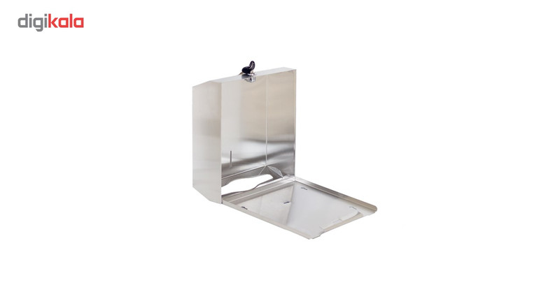 بدنه استیلبدنه این مخزن دستمال از جنس استیل آینه ای بوده.درخشندگی و شفافیت این بدنه به حدی است که به جرأت میتوان از آن به جای آینه استفاده کرد.تمام قسمت های این مخزن آینه ای بوده که جلوه خاصی را به این مخزن دستمال میدهد.لولاهای محل باز و بسته شدن درب مخزن نیز از جنس فلزی است که دوام و کارایی آن را بالا میبرد.حجم بسیار مناسبحجم بسیار مناسب این مخزن دستمال کاغذی استیل،آن را برای استفاده در اماکن پر رفت و آمد مناسب قرار داده است.در این مخزن دستمال شما میتوانید چیزی در حدود 400 برگ دستمال کاغذی با جنس مرغوب قرار دهید.خروجی دستمال خوش فرم، و نشانگر تعداد دستمال باقی ماندهخروجی اسن دستمال بسیار خوش فرم و زیباست که به راحتی میتوان دستمال را از طریق آن خارج نمود.بر روی بدنه مخزن دستمال کاغذی نشانگر میزان باقی مانده دستمال قرا داده شده است که علاوه بر کارایی به زیبایی محصول نیز کمک نموده است.متعلقات کاملاین مخزن دستمال کاغذی دارای پیچ و رول پلاک برای پیچ کردن مخزن دستمال کاغذی به دیواری و کلید مخزن برای باز و بسته کردن در مخزن دستمال کاغذی است.درب قفل دار :این مدل دارای قفل با کلید فلزی می باشد که از دسترسی افراد غیر مسئول جلوگیری مینماید.