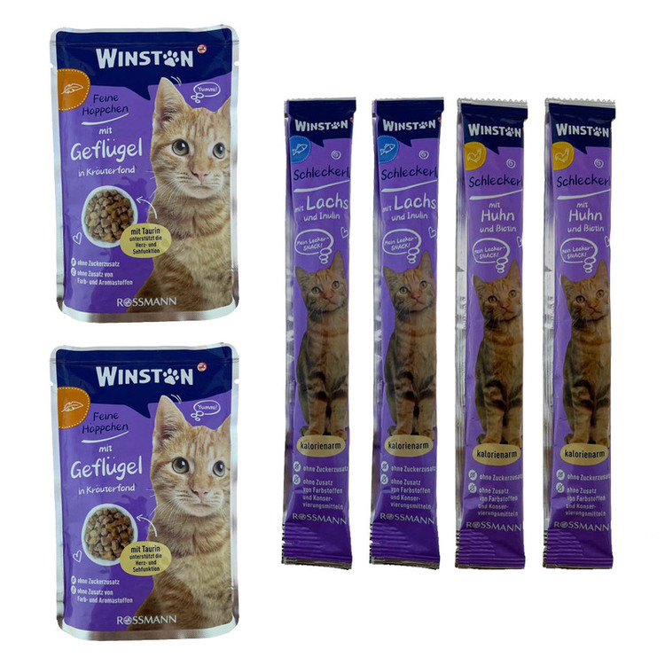 پوج گربه وینستون مدل مرغ در عصاره گیاهی به همراه بستنی گربه مرغ و ماهی مجموعه 6 عددی