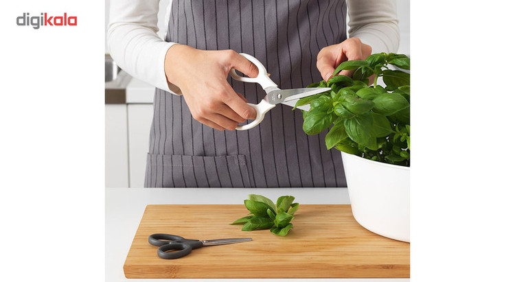 ست دو عددی قیچی «Ikea» (ایکیا) مدل «Markbart» از مهمترین ملزومات آشپزخانه محسوب میشوند که کار برش را برای افراد مختلف آسانتر میکنند. تیغههای هرکدام از این قیچیها از استیل مرغوب ساخته شده است و بهاندازهی کافی تیز هستند تا بهراحتی مواد خوراکی مانند سبزیها یا کیسههای پلاستیکی و سفره و... را برش دهید. استیل بهکاررفته در قیچی مقاومت مطلوبی در برابر رطوبت دارد و بعد از گذشت مدتزمانی کوتاه، کُند نمیشود. همانطوری که در مشخصات فنی و عکسها دیده میشود، قیچیهای این ست با اندازهای متفاوت طراحی شدهاند تا با توجه به نیازتان یکی از آنها را انتخاب کنید. دستهی هرکدام از قیچیها از پلاستیک پلیپروپیلن تولید شده است. پلیپروپیلن در مقایسه با مواد اولیه نامرغوب موجود در بازار، کیفیتی بهتر دارد و بهمرورزمان تغییر شکل نمیدهد. ست دو عددی ایکیا برای افراد راستدست و چپدست قابلاستفاده است؛ بنابراین تمام افراد خانواده میتوانند در زمان نیاز بهسادگی از این قیچیها استفاده کنند. از دیگر ویژگیهای منحصربهفرد مدل «Markbart» باید به قابلیت شستوشوی آنها بهطور دستی و با ماشین ظرفشویی اشاره کنیم. بعد از استفاده از قیچی میتوانید آن را به همراه سایر ظروف داخل ماشین ظرفشویی قرار دهید تا بدون دردسر تمیز شود. ناگفته نماند که بعد از شستن قیچی، آن را با یک دستمال بهخوبی خشک کنید.