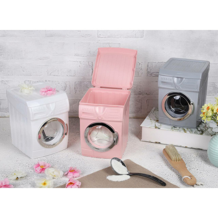 این محصول جذاب از برند مرسه و با طرح ماشین لباسشویی را میتوانید برای ذخیره کردن پودر ماشین استفاده کنید و به خاطر ابعاد بزرگ آن حتی میتوانید قرصهای ماشین ظرفشویی و وسایل دیگر را درون آن قرار داده و استفاده کنید. درب این محصول به رنگ کروم و داخل آن ملاقهای جهت پیمانه کردن است.