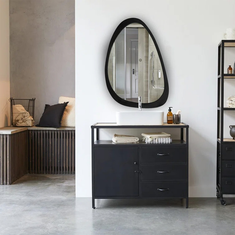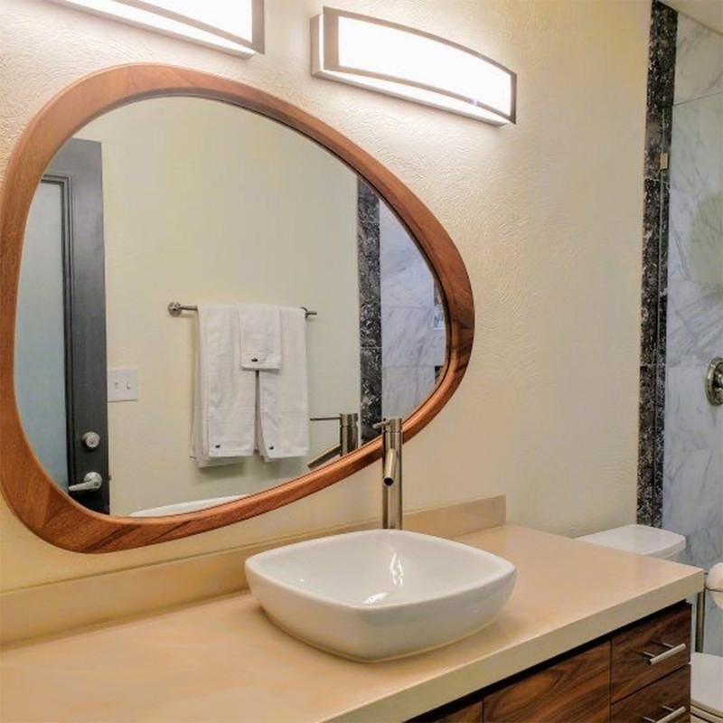 آینه سرویس بهداشتی چوبی اطلس یک آینه باکیفیت و دارای سایز 50x35 سانتی متر می باشد این محصول از کیفیت و طراحی منحصر به فردی برخوردار است . این محصول ساخته شده از MDF با ضخامت 16 میل وارداتی ( چامسون ترکیه ) و آینه نقره اندود درجه A سوپر کلییر و رنگ آن پلی اورتان با کیفیت میباشد.تمامی لبه های قاب چوبی توسط دستگاه ابزار خورده است.همچنین پشت آینه چندین کمربند MDF به کار برده شده که در حفظ سلامت آینه نقش به سزایی ایفا می کند.برای نصب در پشت محصول 4 عدد یراق به کاربرده شده که بوسیله 2 عدد میخ یا پیچ رول پلاک به راحتی قابل نصب روی دیوار یا ... میباشد .