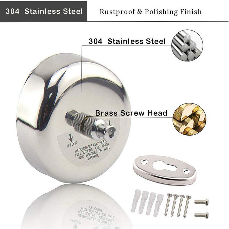 بند رخت دیواری جمع شو مدل هتلی ساخته شده از جنس استنلس استیل و مناسب استفاده در فضاهای مرطوب است.