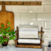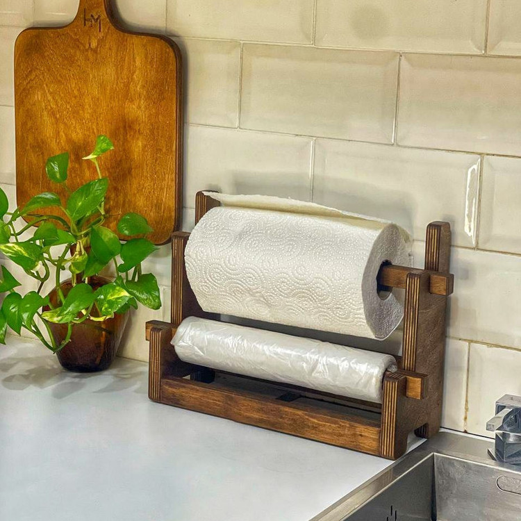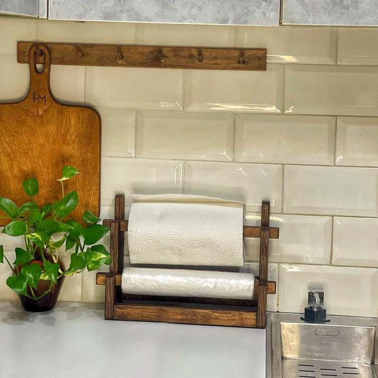 جای رول دستمال آشپزخانه و جای کیسه فریزر چوبی یک استند چوبی است که برای قرار دادن رول دستمال آشپزخانه و کیسه فریزر بر روی کابینت استفاده میشود. استند چوبی رول دستمال و کیسه فریز هدیه و کادوی چوبی ارزشمندی است که به دکوراسیون منزل و آشپزخانه خود می دهید. جای رول دستمال آشپزخانه و کیسه فریزر می تواند به عنوان محصولی تکمیلی برای جهیزیه باشد.به هنگام خرید استند جای دستمال رول آشپزخانه و رول کیسه فریزر چوبی پارسوماش به آرم پارسوماش بر روی بسته بندی محصول (موجود در تصاویر) دقت کنید.