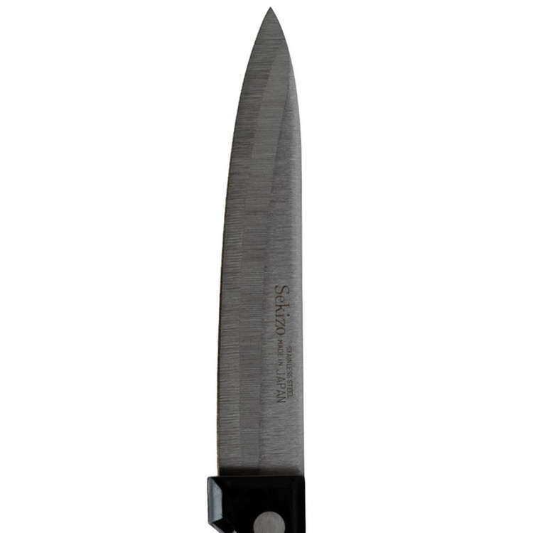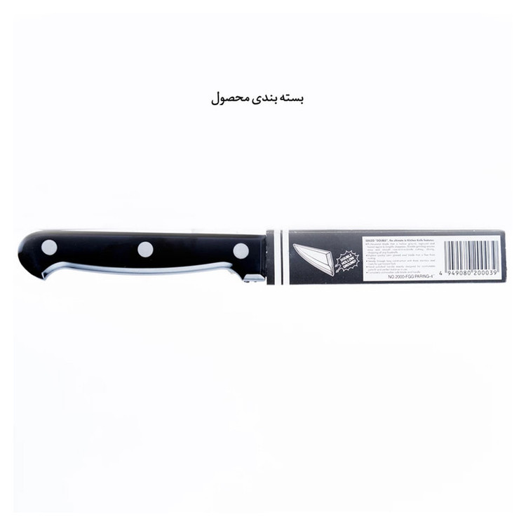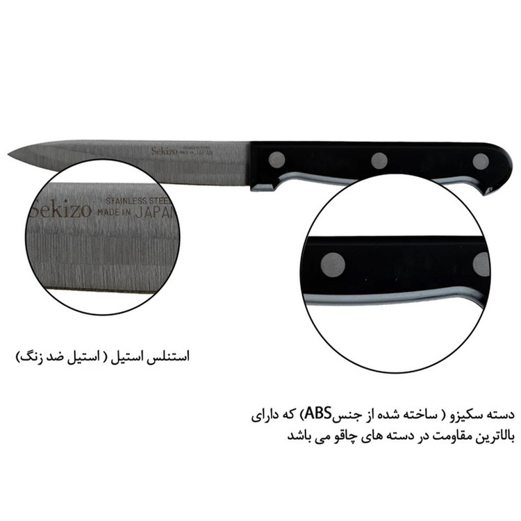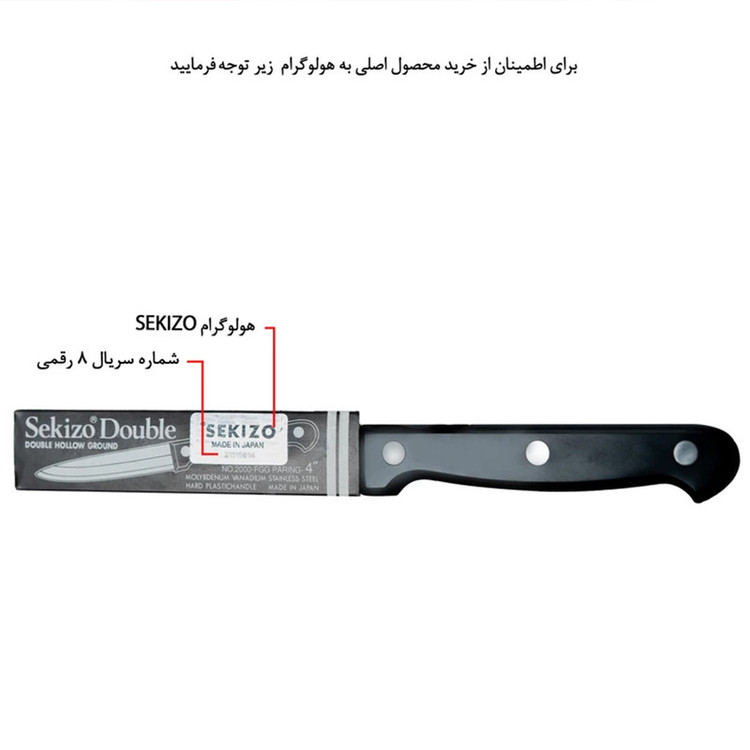 سکیزو از قدیمی ترین برندهای تولیدکننده چاقو و ابزار برنده در کشور ژاپن می باشد . محصولات این برند در اکثر نقاط جهان در منازل و یا رستوران ها در حال استفاده می باشند . چاقو سکیزو به دلیل استفاده از با کیفیت ترین متریال می تواند سالها قابل استفاده باشد . این محصول چاقو سکیزو مدل 2000 می باشد که ساخته شده از فولاد ضد زنگ می باشد . تیغه حرفه ای ساخته شده از فولاد این محصول تضمین می کند که در استفاده برشی صاف ، آسان داشته باشید . دسته چاقو از جنس ABS ساخته شده که بسیار سخت و محکم می باشد و کاملا جلا خورده و از طریق 3 پرچ فولادی محکم به چاقو متصل گردیده است. از این چاقو می توانید در آشپزخانه ، محل کار و یا باغ و کمپینگ استفاده نمایید. برای اطمینان از اصلی بودن محصول به هولوگرام سکیزو که دارای شماره سریال 8 رقمی می باشد توجه فرمایید.