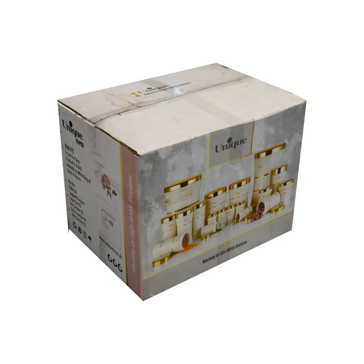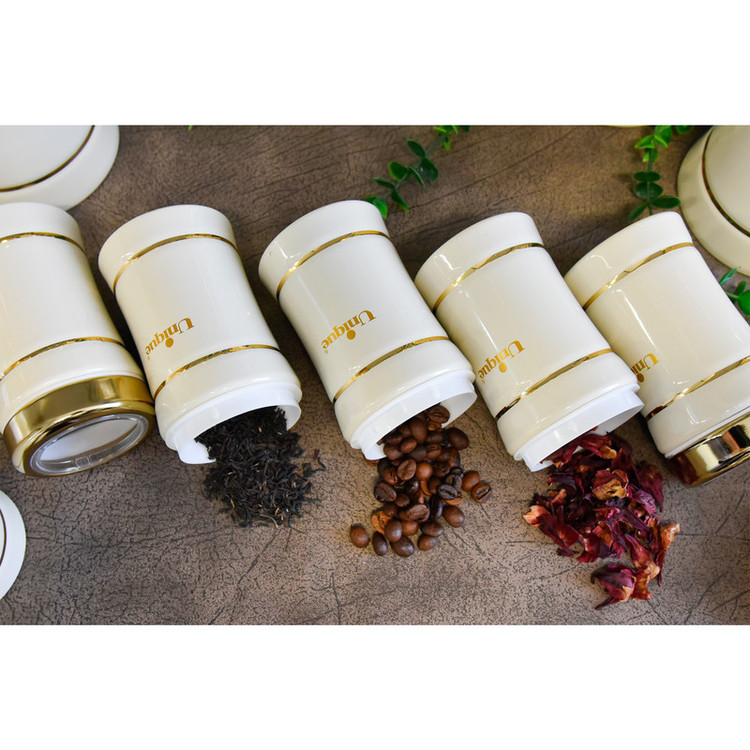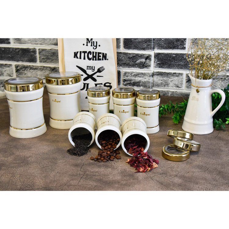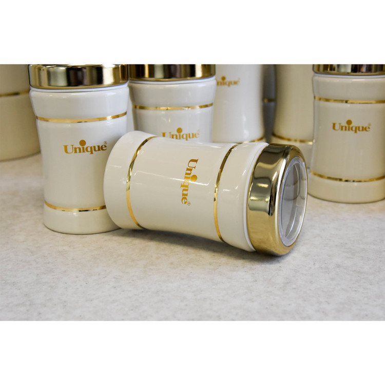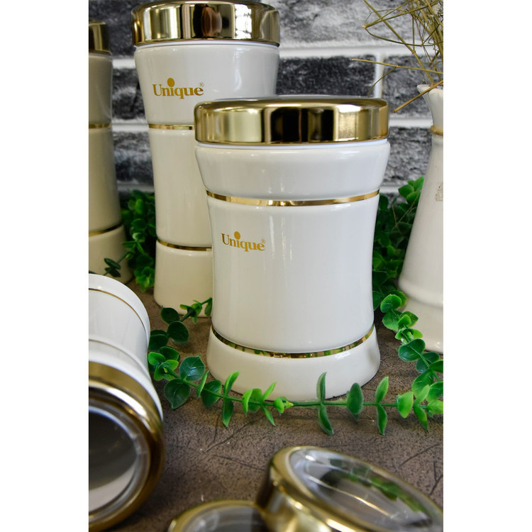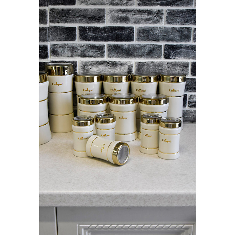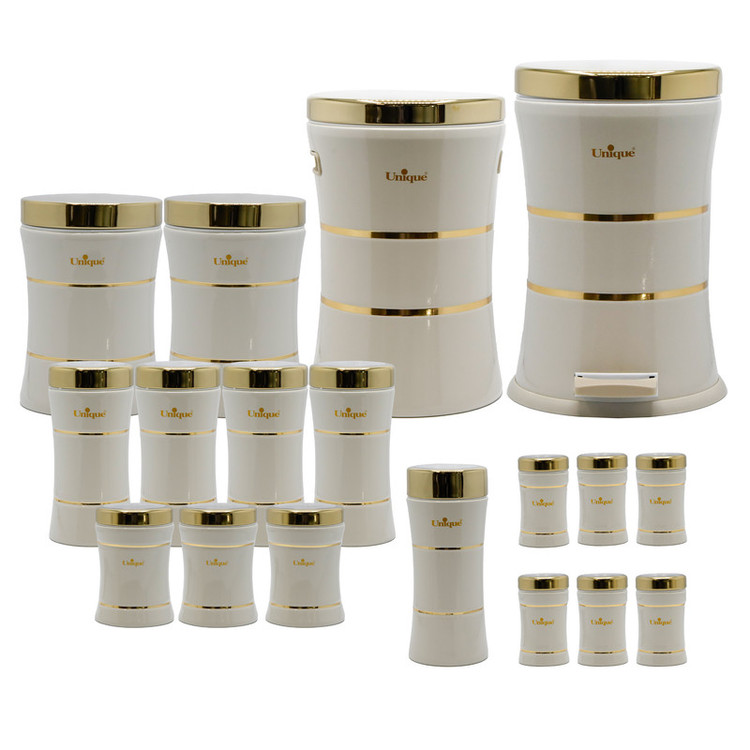 این ست شامل :سطل برنج 1عدد سطل زباله 1عدد سطل شکر 1عدد سطل قند 1عدد بانکه اسپاگتی 1عدد بانک متوسط 3عدد بانکه بزرگ 4عدد جای ادویه 6عدد
