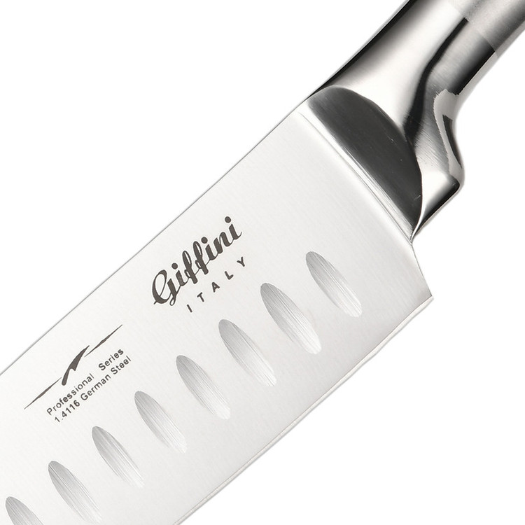 چاقوی آشپزخانه جی فی نی از بهترین و معتبر ترین برندهای جهان میباشد که تمام مراحل طراحی ان در شرکت GIFFINI ایتالیا انجام میشود و برای تولید ان از بهترین و با کیفیت ترین الیاژ جهان استفاده شده که در کار کردن با این چاقو شما ان را کاملا حس کرده و لذت آشپزی را برای شما چند برابر خواهد کرد و بدلیل طراحی دسته و بدنه یک تکه این چاقو هرگز دسته ان جدا نخواهد شد و شما را سالیان سال از خرید مجددا ان بی نیاز خواهد کرد.
