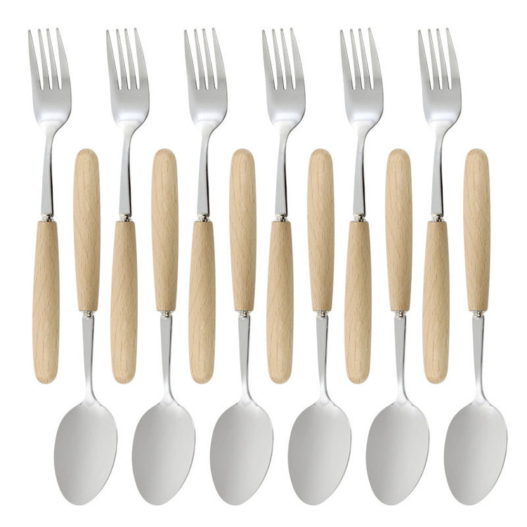 سرویس قاشق و چنگال 12 پارچه مدل چوب و استیل