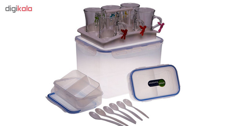 سایر توضیحاتشامل: - 6 عدد لیوان با ابعاد 10*7 - 6 قاشق با ارتفاع 13 سانتی متر - ابعاد ظروف داخلی : 5*11*18