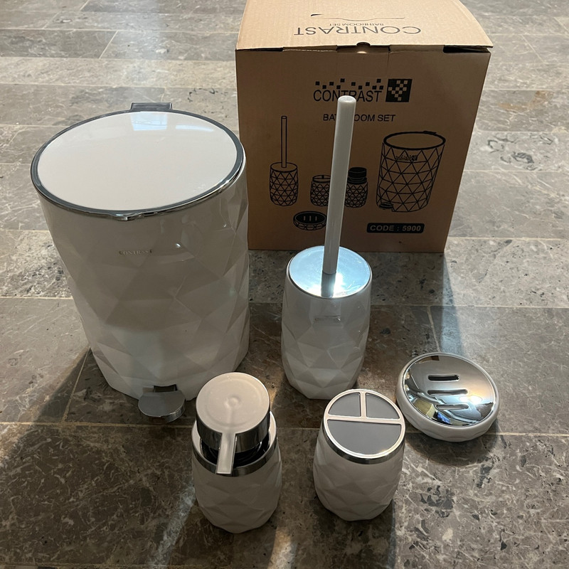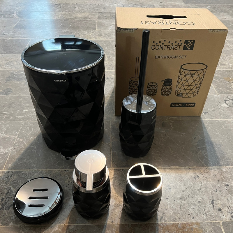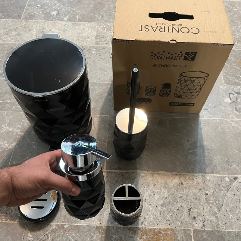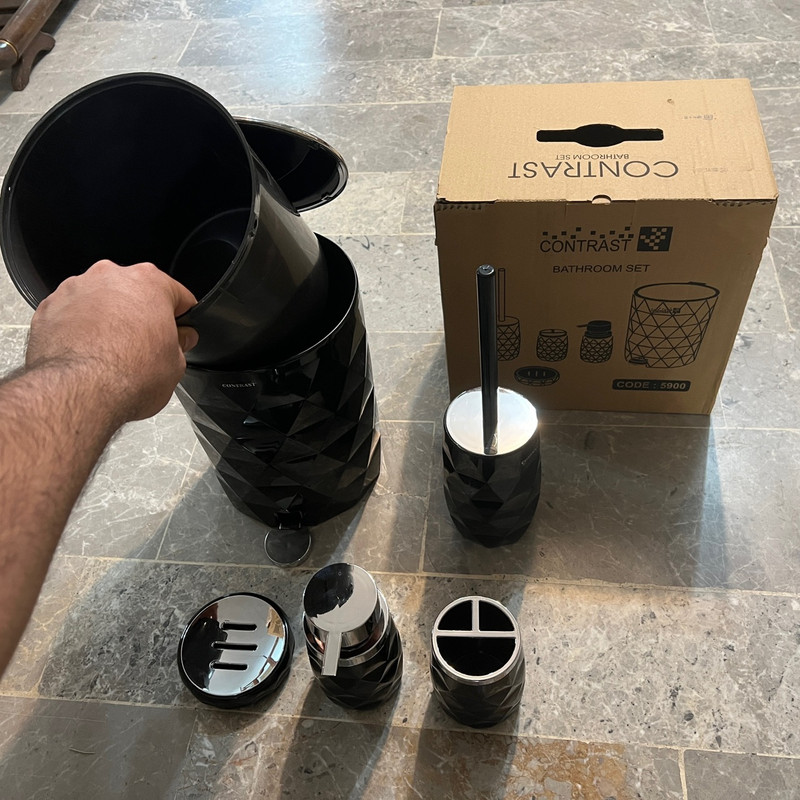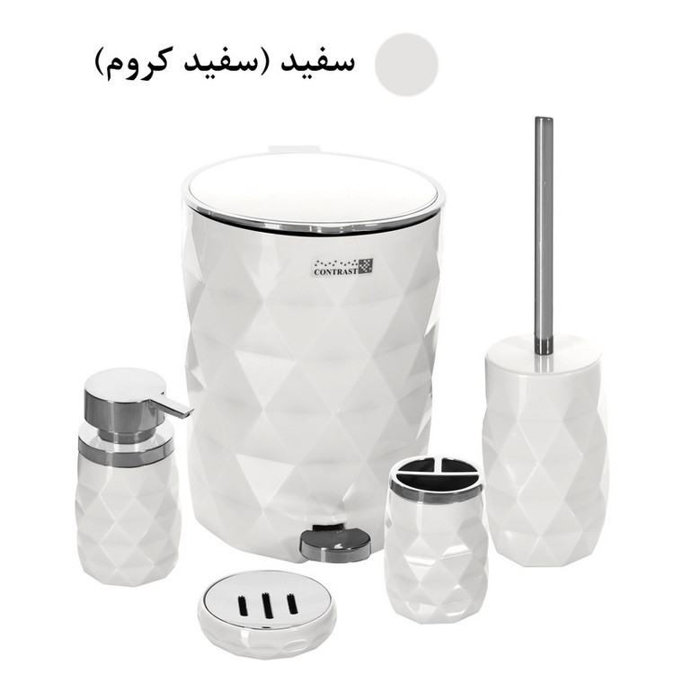 این مدل ست سرویس بهداشتی کنتراست با الهام از پوسته میوه آناناس طراحی و تولید شده است. سطل زباله دارای یک سطل زباله داخلی برای جابجایی راحت تر زباله ها و درب سطل دارای قابلیت آرام بند بوده و به آرامی با کمترین صدایی بسته می شود.