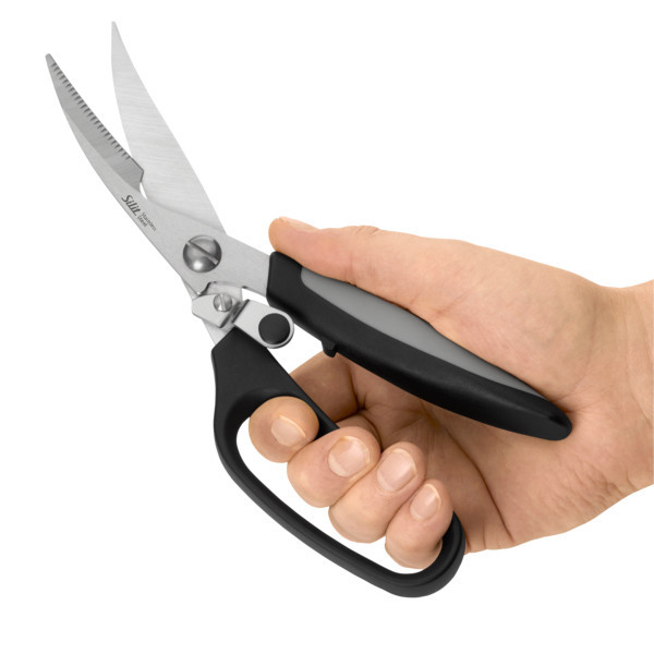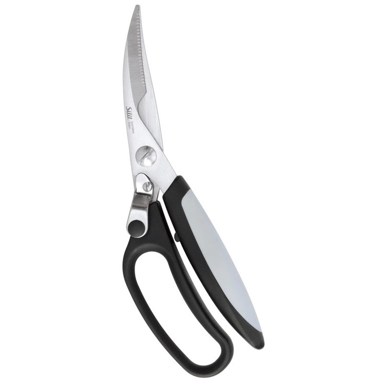 قیچی زیلیت مدل SILIT Pollo Geflugelschere ساخته شده از استیل در کارخانه بنام WMF است . از مرغ کنتاکی ترد برشته شده روی سیخ گرفته تا سالادهای خامهای ، سبزیجات و خیلی چیزهای دیگر را به راحتی خرد کنید . با استفاده از قیچی مرغ Pollo Silit تمام الزامات برش مرغ خام ، آب پز یا بوداده را برآورده می کند . به لطف انتقال بهینه نیرو از دستگیره ها به لبه برش ، خیلی راحت و روان برش مرغ را تضمین می کند . تیغه های خمیده و سخت ساخته شده از فولاد ضد زنگ با کیفیت بالا ، قفل ایمنی برای نگهداری آسان و ایمن و دسته نرم ، قیچی مرغی Silit Pollo را به کمکی ضروری و همه کاره آشپزخانه تبدیل کرده است . هم برای راست دست ها و هم برای چپ دست ها مناسب است و به راحتی در ماشین ظرفشویی تمیز می شود .