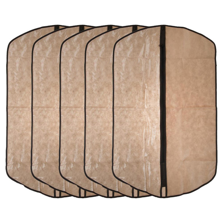 کاور کت و شلوار مدل X5 بسته 5 عددی از جنس پارچه ضخیم و با کیفیت و یک سمت آن در جلو از طلق شفاف ساخته شده که متوجه لباس داخل آن شوید.این کاور زیبا در ابعاد 110 در 60 سانتیمتر تولید شده و شما میتوانید بدون نگرانی از ورود گرد و غبار یا بو گرفتن لباس های خود از آن استفاده نمایید.
