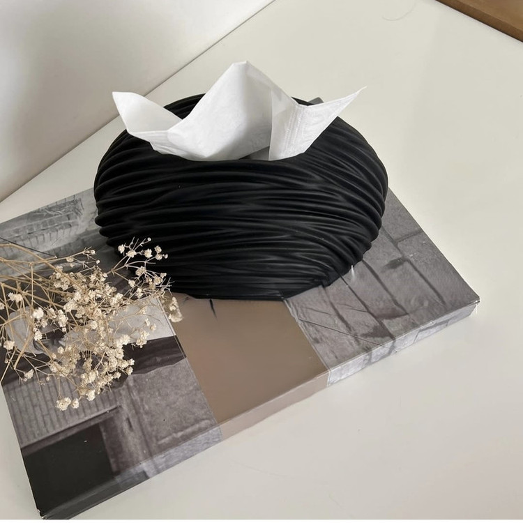 جعبه یا جای دستمال کاغذی با طرح زیبای شیاردار و با جنس پلی استر میباشد.اینکار رنگ شده با بهترین برند رنگ ها میباشد.رنگ تثبیت شده میباشد و قابل نظافت با دستمال نمدار است.